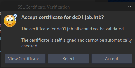 | Subject Alternative Name: DNS:dc01.jab.htb, DNS:*.dc01.jab.htb