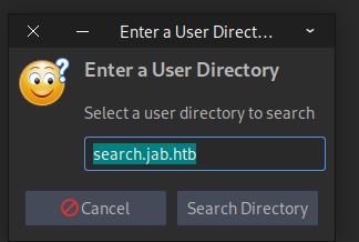 Add search.jab.htb to the hosts file before clicking Search Directory