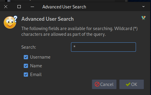 Enter the * wildcard to get a list of all users