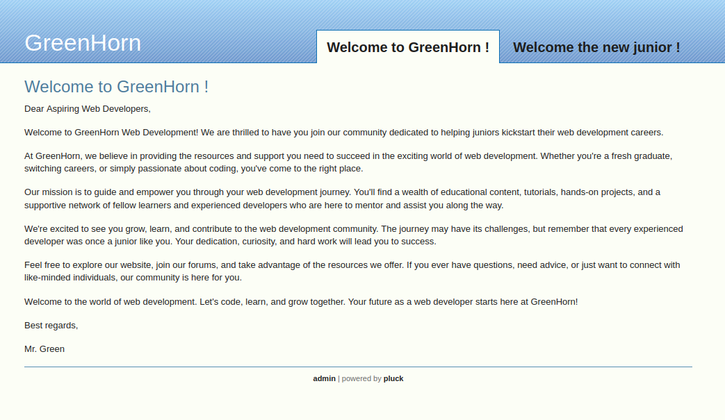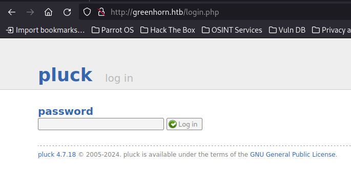 greenhorn.htb is running the Pluck CMS