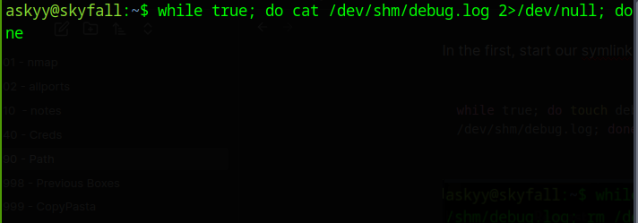 while true; do touch /home/askyy/debug.log 2>/dev/null; ln -sf /home/askyy/debug.log /dev/shm/symlink.log; rm /dev/shm/symlink.log; done