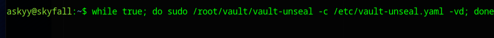 while true; do sudo /root/vault/vault-unseal -c /etc/vault-unseal.yaml -vd; done