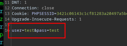 Looking an intercepted login attempt in burp, we see that the following POST data is sent