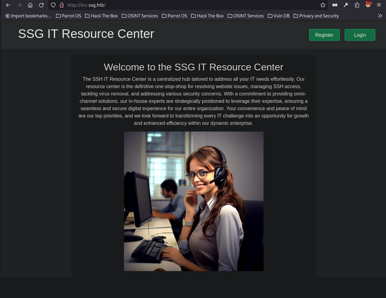 Add itrc.ssg.htb and ssg.htb to /etc/hosts