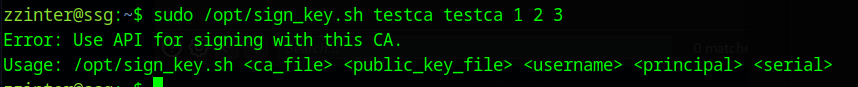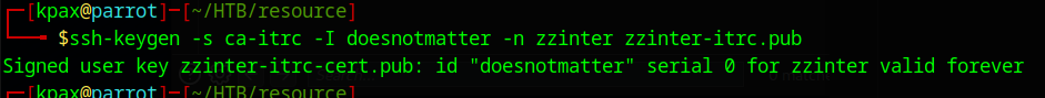 ssh-keygen -s ca-itrc -I doesnotmatter -n zzinter zzinter-itrc.pub