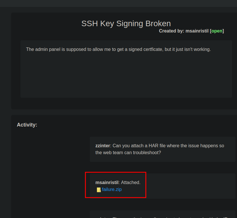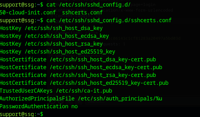 There was mention in the messages and tickets about SSH key signing problems. Looking at the ssh server, we see that there is a TrustedUserCAKeys entry.