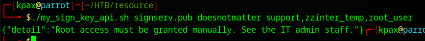 ssh-keygen -s ca-itrc -I doesnotmatter -n zzinter,root zzinter-itrc.pub