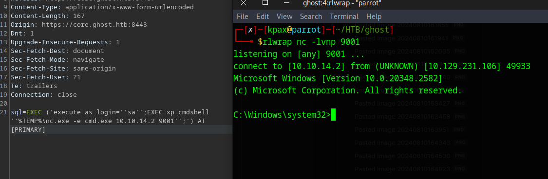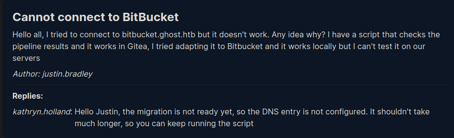gitea_temp_principal:szrr8kpc3z6onlqf # Creds for gitea.ghost.htb
