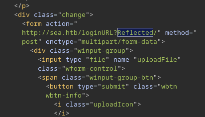 If and admin, who is logged goes to http://sea.htb/index.php&page=login?Reflected, then the work reflected is see in the repsonse