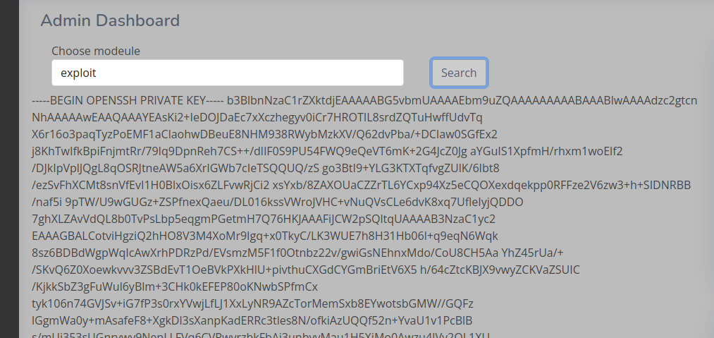 Now enter exploit in the search field and click Search to leak the SSH key.