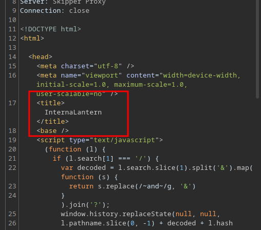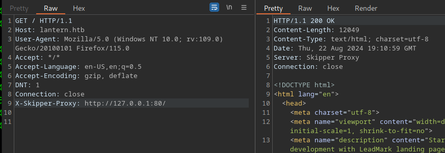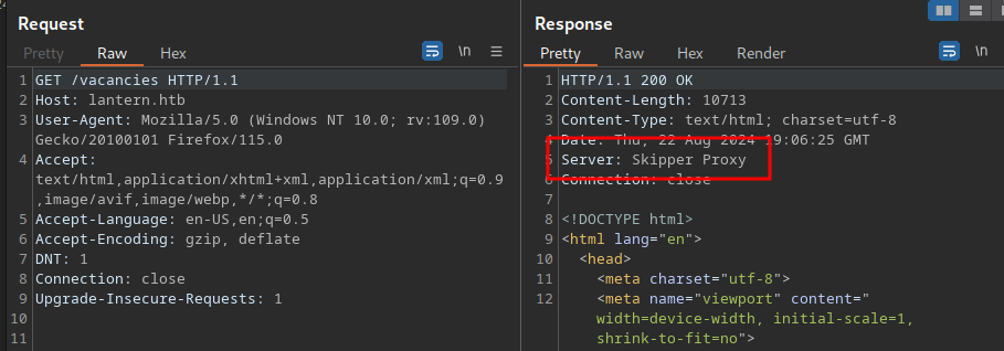 Looking at the response from a request to the web server on port 80, we see reference to Skipper Proxy