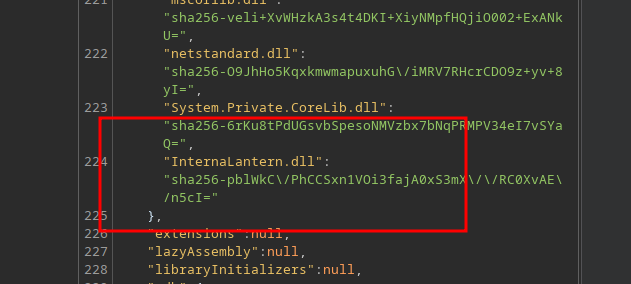 Within this file we find reference to a custom DLL called InternalLantern.dll