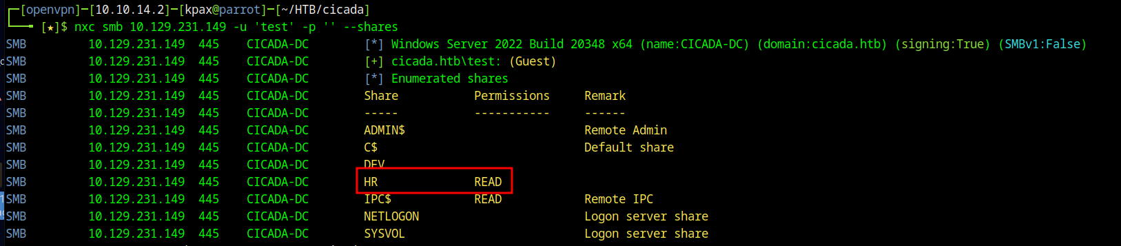 nxc smb 10.129.231.149 -u 'test' -p '' --shares