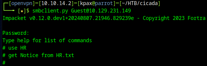 smbclient.py Guest@10.129.231.149 # Blank Password when prompted
