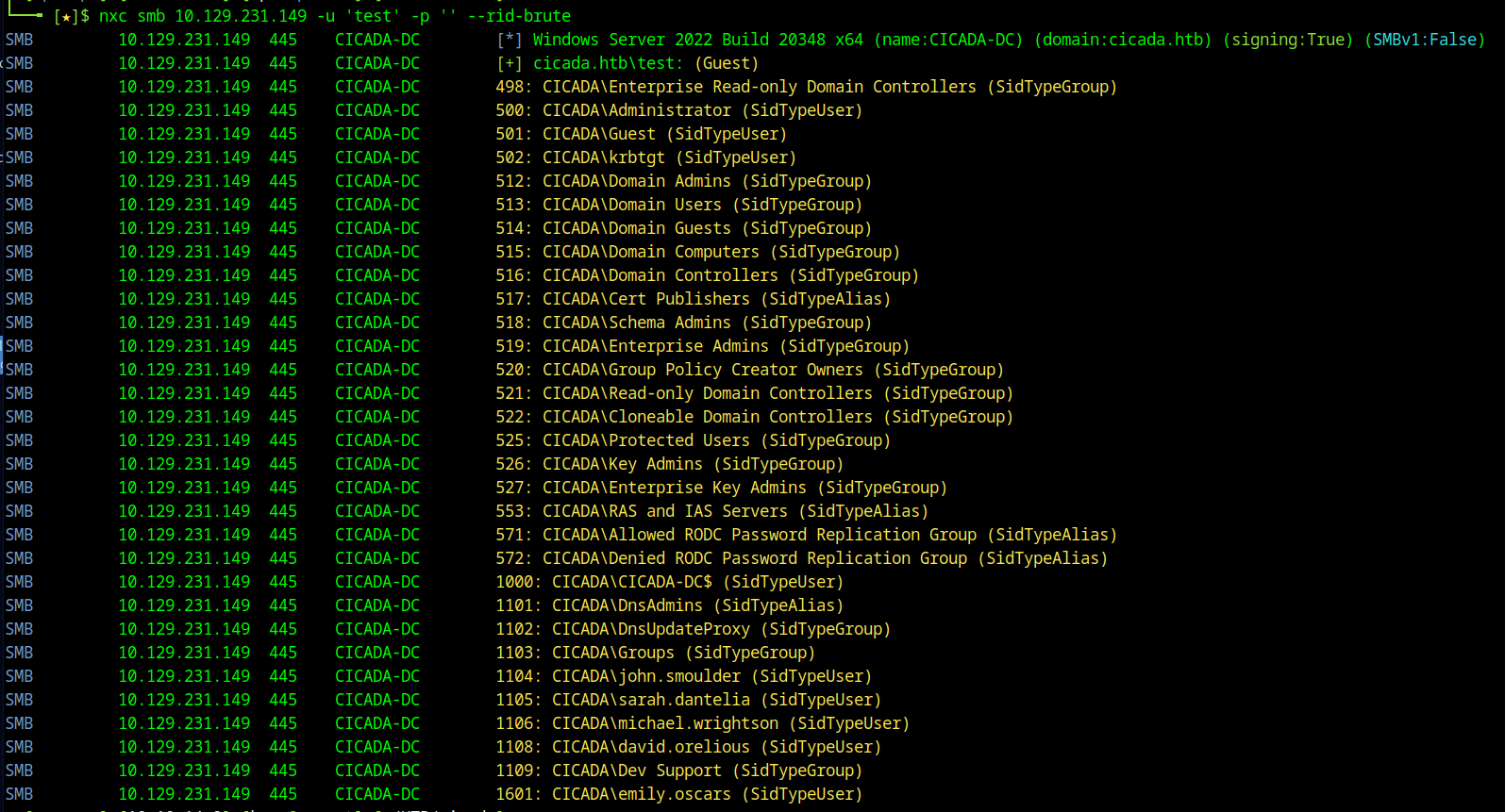 nxc smb 10.129.231.149 -u 'test' -p '' --rid-brute
