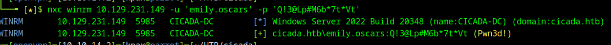 nxc winrm 10.129.231.149 -u 'emily.oscars' -p 'Q!3@Lp#M6b*7t*Vt'