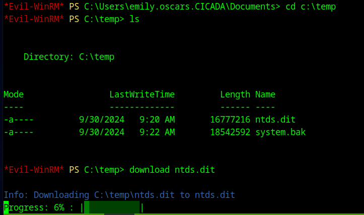 Now we need to download the files. We can do this using our evil-winrm session from before and the in-built download command.