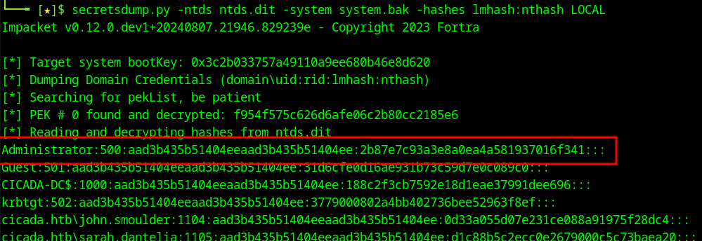 Once we have them downloaded we can extract the hashes suing secretsdump.py from impacket